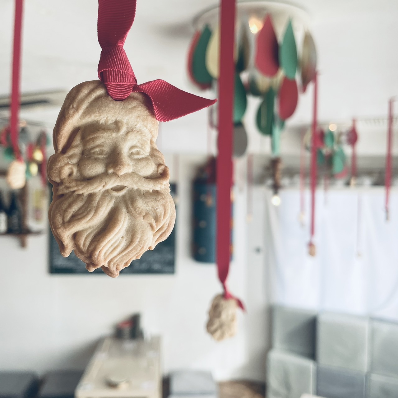 スペキュロス型で焼いた彫刻のような繊細な形のサンタクッキーです。